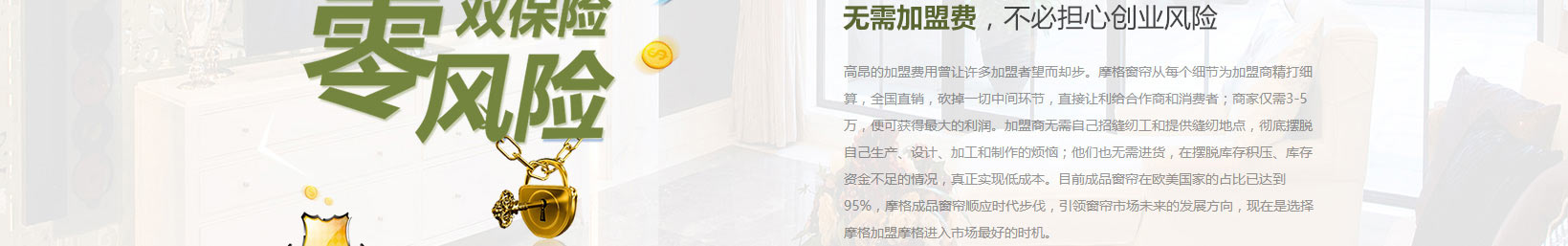 摩格窗簾是中國知名品牌,中國綠色環保品牌,裝飾協會會員單位,在業內擁有非常高的知名度,與國內一線商場紅星美凱龍、居然之家、歐亞達家居等擁有十多年良好的合作關系,助您輕松入駐一線商場。